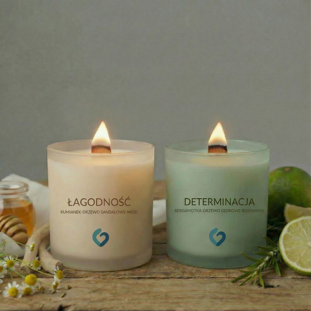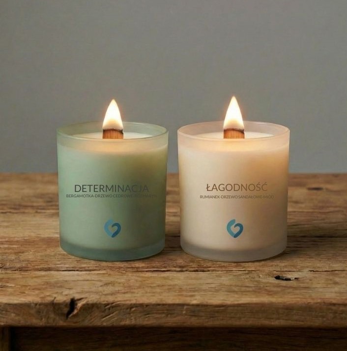 - Rodzaj: Świeca sojowa intencyjna z drewnianym knotem.